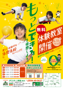 いつもお世話になっております。 JPCスポーツ教室桑名店です😊   6/11(日)に無料体験教室を開催いたします。 ※参加費無料・完全予約制   当日は、当教室で行なっている授業を実際に体験することが...