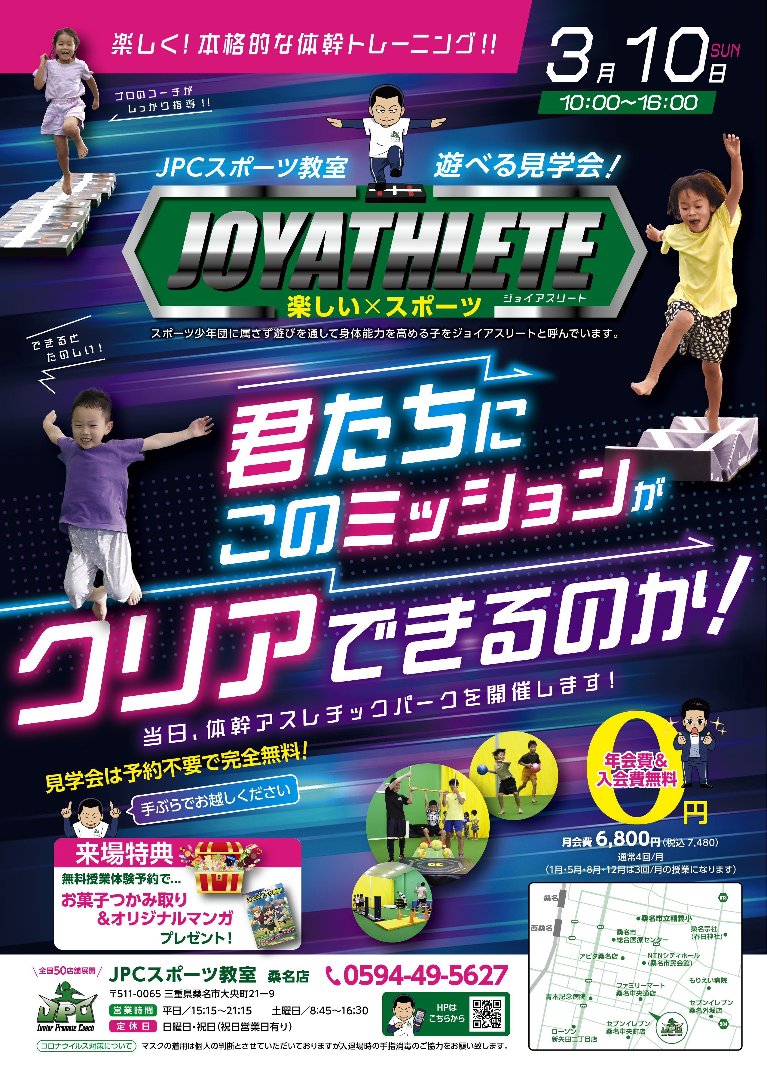 こんにちは(^^)/ JPCスポーツ教室桑名店です🌈   3月のイベント「JOYアスリート」には、たくさんのご来場ありがとうございました!   お子様も新しい学年を迎え、これからの一年間も頑張ろうと胸...