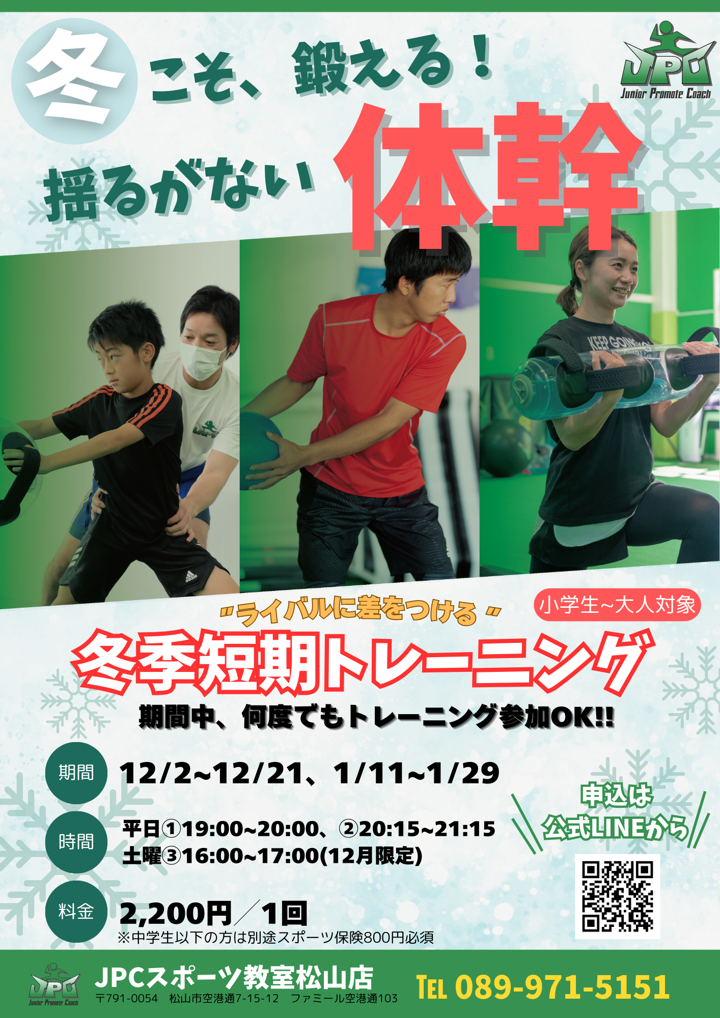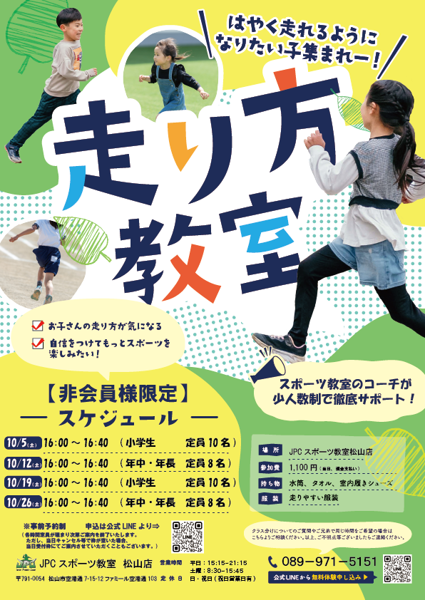【新規ご入会の料金改定について】 平素よりJPCスポーツ教室松山店をご利用いただき、誠にありがとうございます。このたび、昨今の社会的状況や運営環境の変化に伴い、2025年10月1日より新規ご入会の方を...
