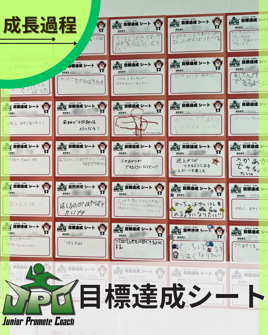 こんにちは! JPCスポーツ教室松山店です。 会員の皆さまにご記入いただいた「目標達成シート」を教室内の壁一面に掲示いたしました‼️ 一人ひとりの目標や想いが詰まったシートがずらりと並び、教室全体がと...