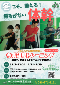 12月限定で土曜6部 16:00~17:00のお時間にも体幹トレーニングが可能に!