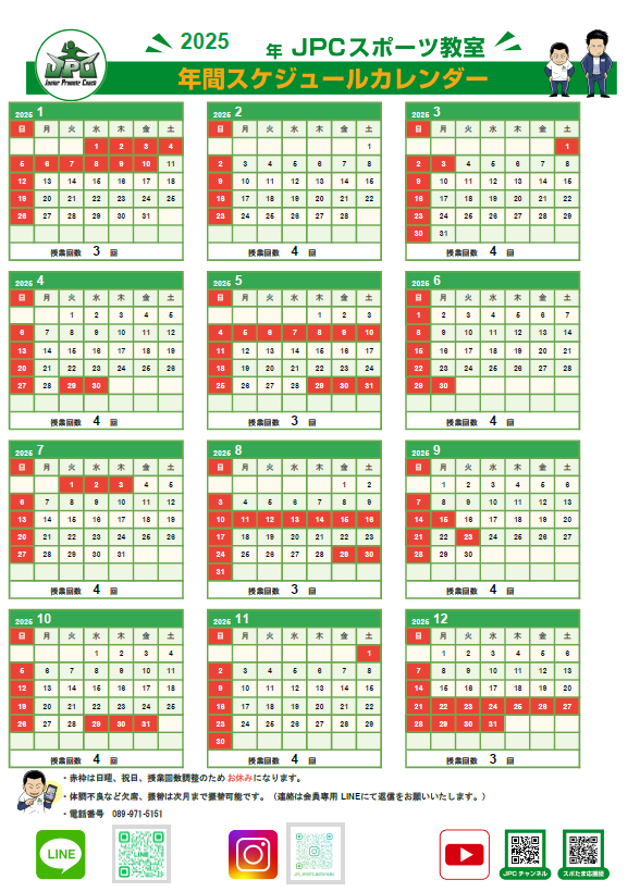 JPCスポーツ教室松山店 年間スケジュール カレンダー
