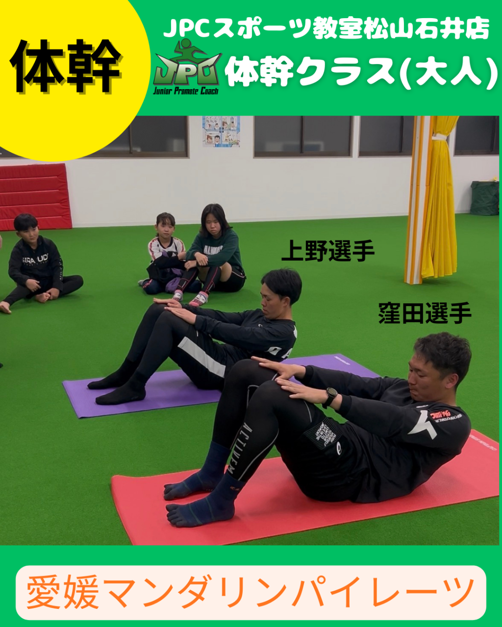 【JPCスポーツ教室松山石井店】 先日、愛媛マンダリンパイレーツの窪田選手と加納選手へ体幹トレーニングの指導を実施しました⚾🔥 野球に必要な体幹強化とパフォーマンス向上のお手伝いをさせていただきます!...