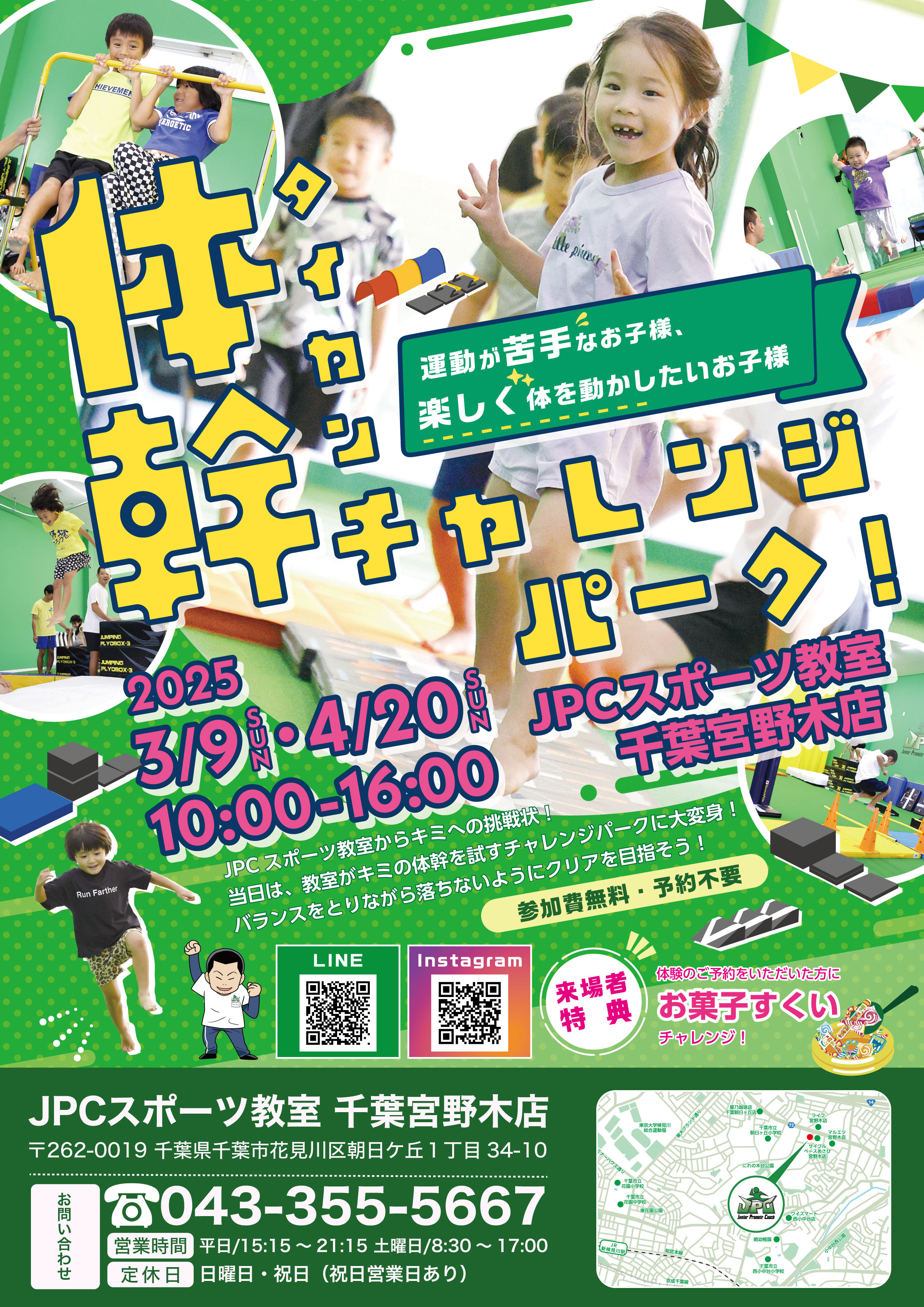 2024年も早いもので残すところ1か月半になってしまいました。 いつもお子様のスケジュール管理や送迎ありがとうございます。   JPCスポーツ教室 千葉宮野木店は3月にOPENして、たくさんの方々にご...