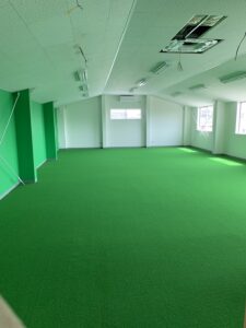 内装は2回建で、白とJPCカラーの緑の壁となっております!