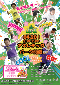 4月20日(日)大好評イベント、アスレチックパークを開催します★ 時間:9:30~15:00 新生活がスタートし何か新しい事にチャレンジさせたいなど、習い事を検討されている方も多いのではないでしょうか...
