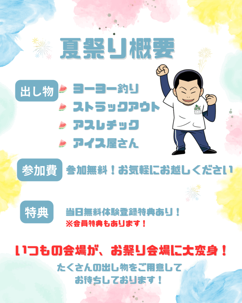 会員様も非会員様も、夏の思い出作りに是非ご家庭でお越しください
