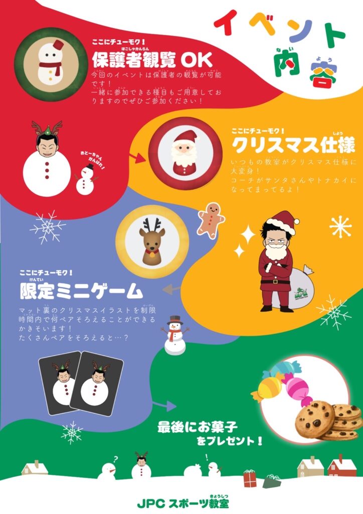 そこで!JPCスポーツ教室新潟中央店では12月16日~21日の一週間クリスマスイベントを開催します🎄☃️