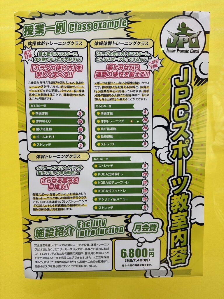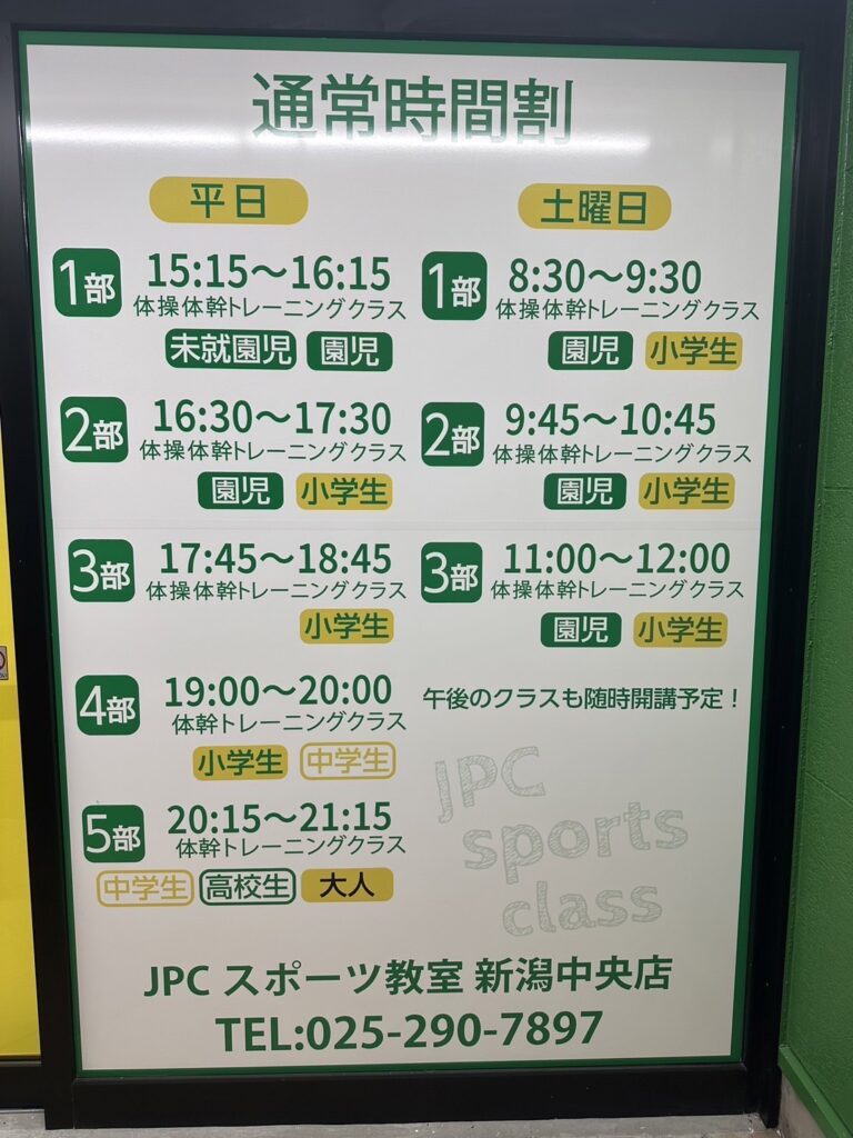 今回は、JPCスポーツ教室新潟中央店のポスターと時間割を紹介いたします❗️