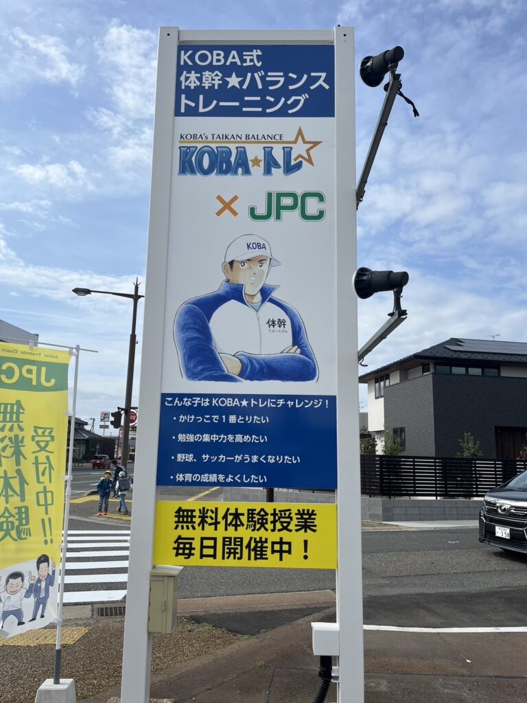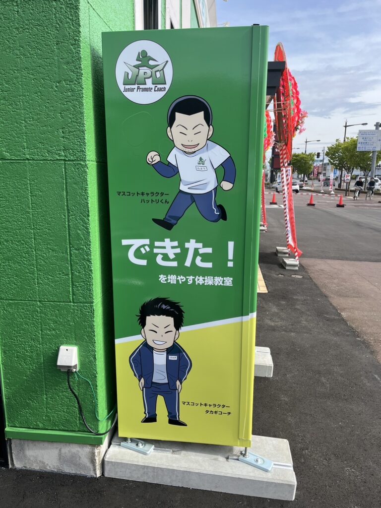 こんな感じで自動販売機もJPCスポーツ教室仕様になっていますし、大きな看板も立っています!