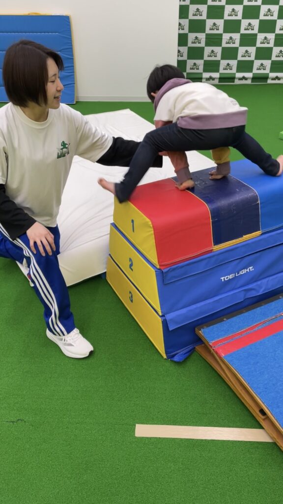 ↑あおコーチが実際に跳び箱の補助をしている様子です!☺️