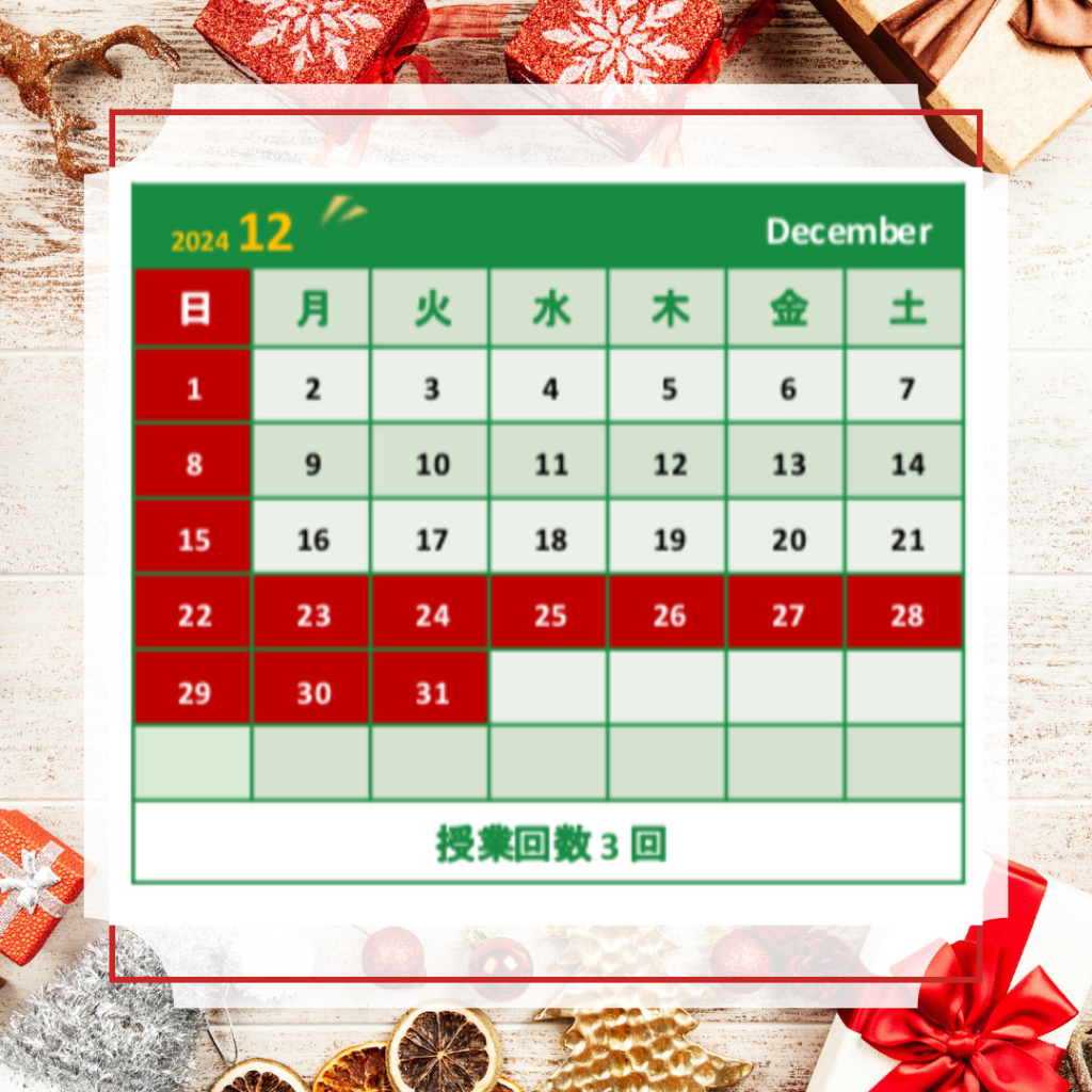 こんにちは!JPCスポーツ教室新潟中央店の焼肉大好きみやコーチです🍖 お待たせしました!12月カレンダーの更新です🗓️ 12月は授業日数が少なく3週間しかありません 12月22日から教室が長期休暇に入...