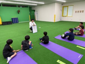 子どもとの接し方で心がけていること:体操クラスではこども達が楽しめるように楽しむ声がけや楽しめる動作を意識している。体幹トレーニングでは元々医療系の大学で人の筋肉や動きについて勉強していたのでリハビリや専門知識を子供達にわかりやすく実際に体験できるように意識している)