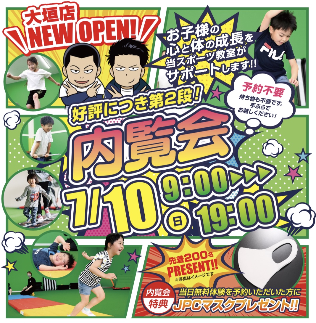 内覧会の日程が決定しました! ◼️開催日時 7/10(日) 9:00〜19:00 ◼️内容 施設の見学 授業内容および使用器具のご説明 各クラスのご案内と無料体験の予約受付   ◼️内覧会特典 JPC...