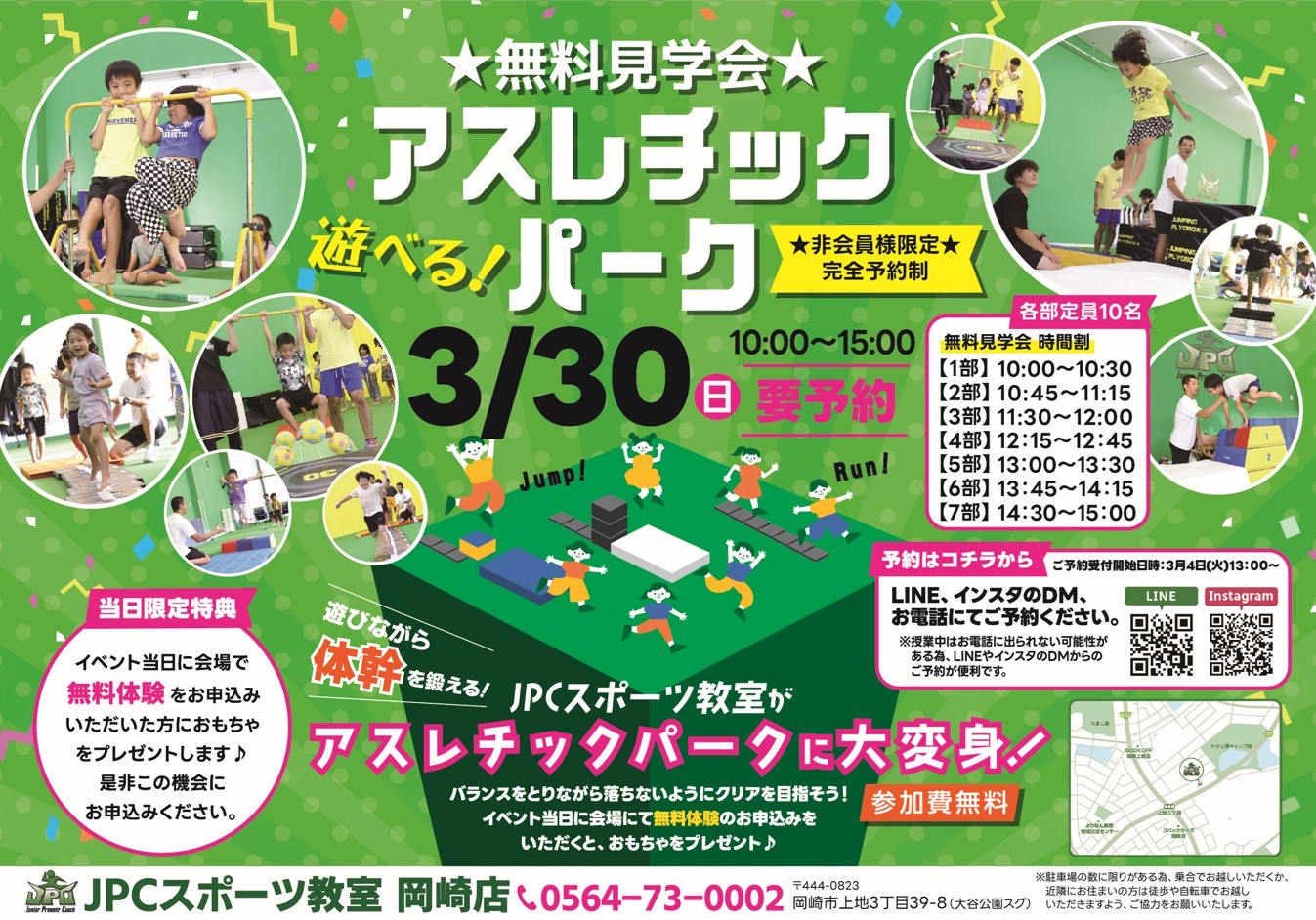 イベント情報 ■日程 3/30(日) ■時間 10:00~15:00 店舗内見学会 遊べる! アスレチックパークイベントを開催いたします🎉 当日は店舗内の見学はもちろん、無料体験の受付や 実際に使う器...