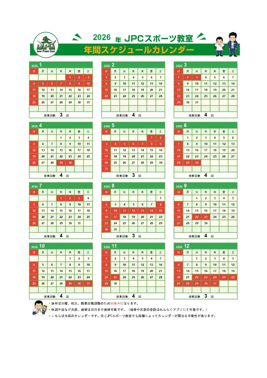 2025年 JPCスポーツ教室カレンダー