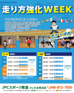 JPCスポーツ教室では、足が速くなりたい人のために「走り方強化ウィーク!」を企画しました!