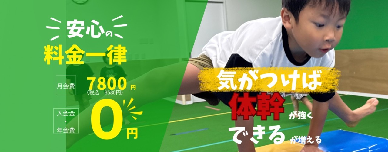 インナーマッスルの強化とアウター強化でキレのある動きに繋げていきます。ウォーターバッグなどを持ち、負荷が高くなっても骨盤の安定を作るためにフォームをしっかり意識して行います。チューブトレーニングでは体幹部と下半身の連動性を高め、マットトレーニングではしっかりと軸を作れるようにスピードとフォームを意識して行います。授業の中では体幹部・上半身・下半身と万遍なくトレーニングを行っていきますのでバランスよく鍛えられます。体操教室やダンス教室と比較される方も是非一度、無料体験に参加してみてください。