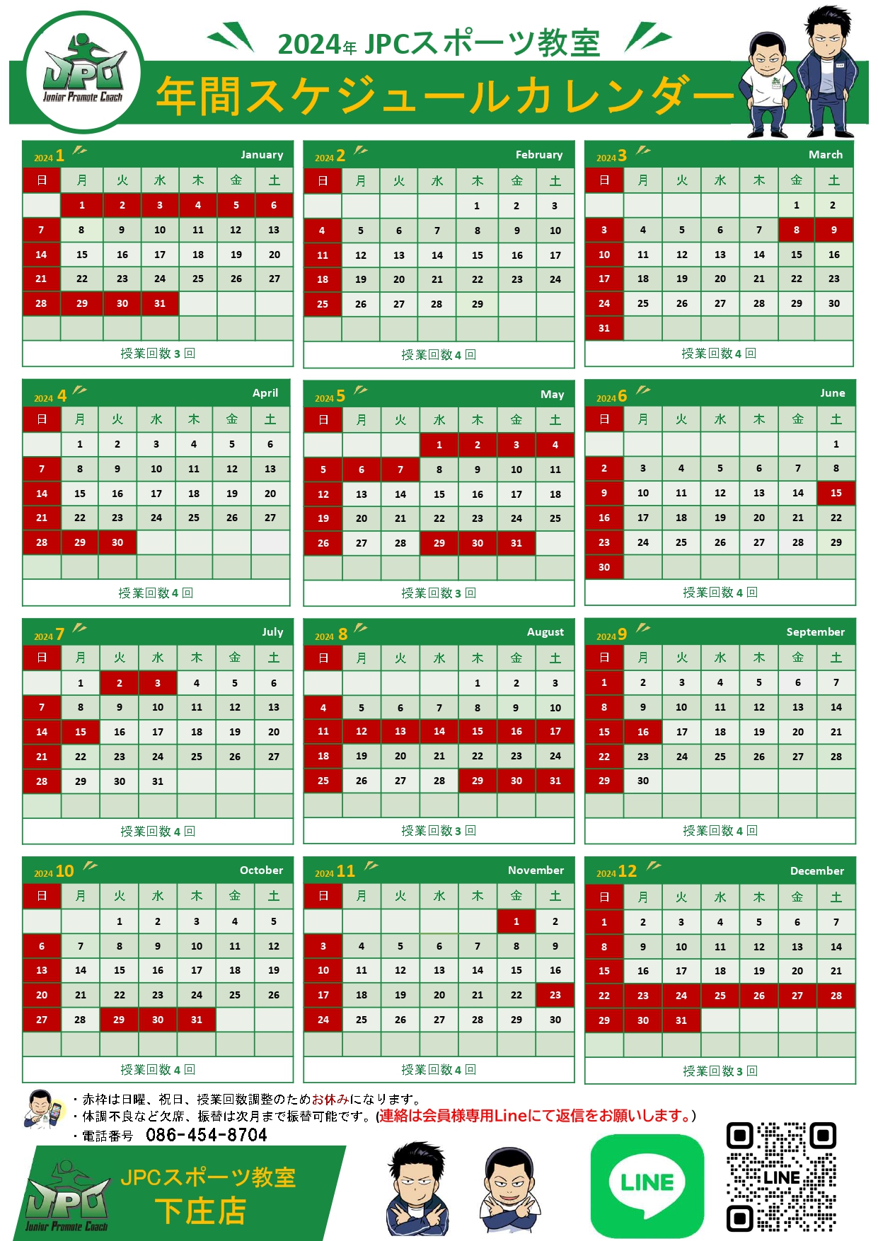 2024年JPCスポーツ教室倉敷下庄店カレンダー