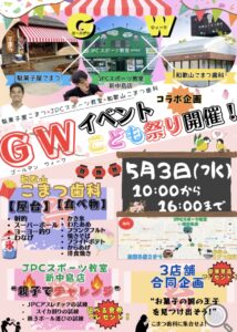 5月3日に小松歯科さんと小松駄菓子店さんとの合同イベントを行います。 [時間]    10:00〜16:00 親子で3つの試練に挑戦してお菓子をもらおう! ※当日は店舗前の駐車場が使えなくなりますので...