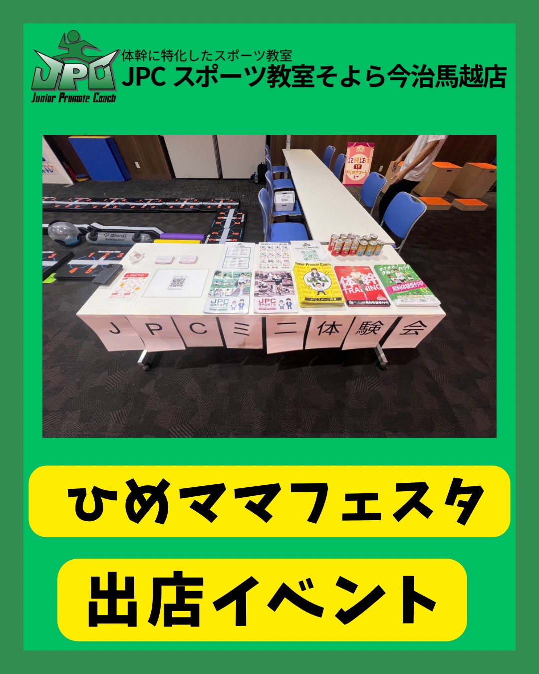 100名近くの来場者がお越しいただき、当教室が体操指導で行っています跳び箱、鉄棒を体験していただきました🤩🤩