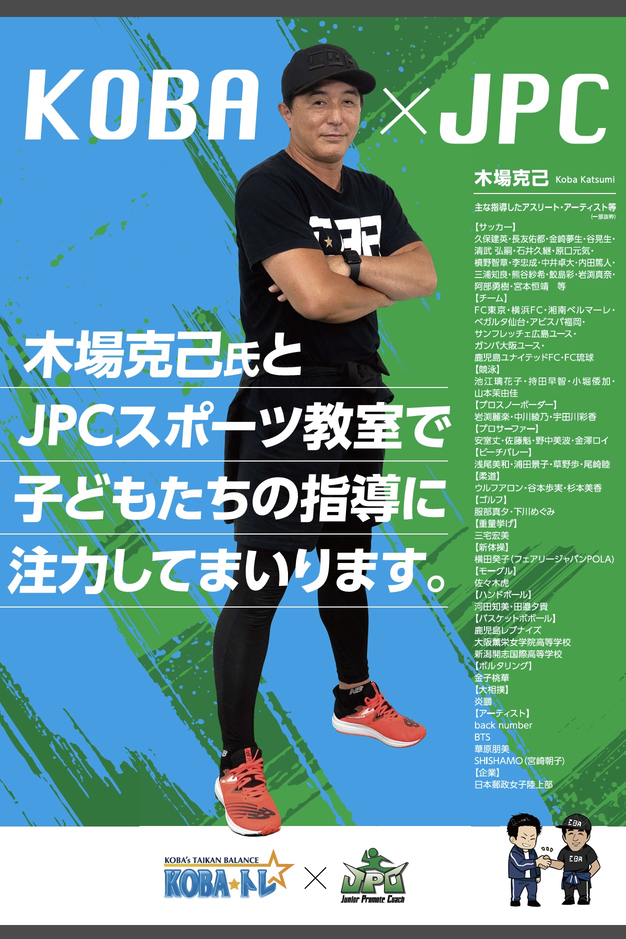体幹トレーニング指導をメインとするJPCスポーツ教室と木場克己氏がタッグを組み、日本のスポーツ人口の増加とスポーツの底上げを目指しています。
