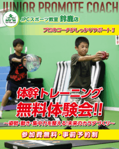 JPCスポーツ教室 鈴鹿店では、お子様の「姿勢」「運動の動き」「集中力」を劇的に変える体幹トレーニング無料体験会を開催します!