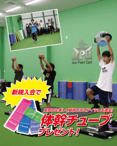 無料体験会にご参加後、新規でご入会いただいた方には、ご家庭でも楽しく体幹トレーニングを継続できる「体幹チューブ」をプレゼントいたします!