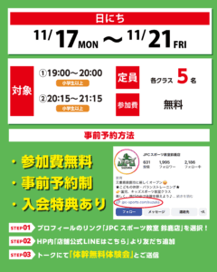 | 日程 | 11/17 (月) 〜 11/21 (金) の5日間限定 |