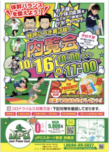 10/16(日)10:00 ~ 17:00 JPCスポーツ教室 内覧会開催!!   運動会シーズンで、カラダの使い方が気になった方もいるのではないでしょうか?   ・走り方をかっこよくしたい。 ・姿勢...