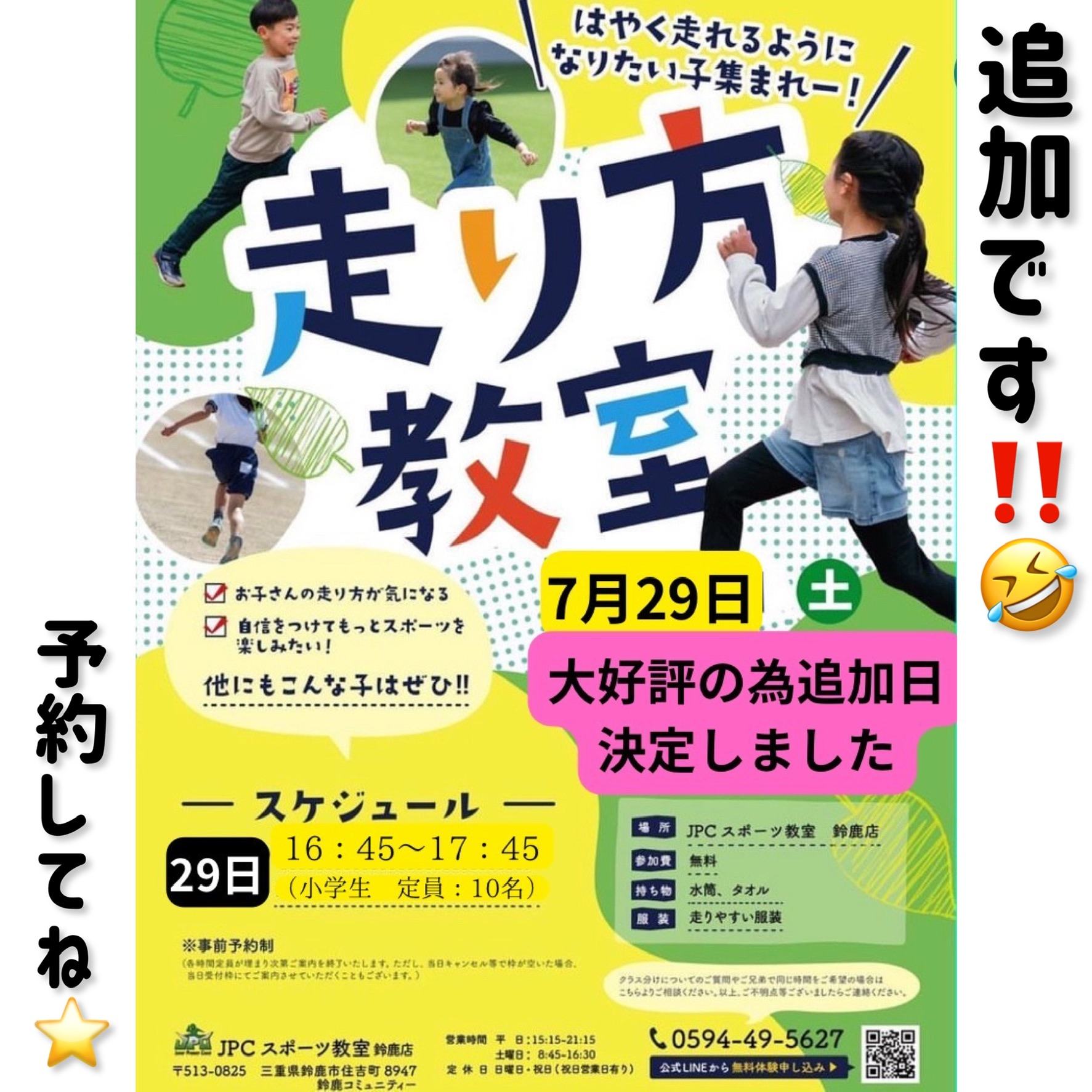 (日時) 7月29日(土)※小学生対象 ⏰16:45〜17:45 参加費☞無料‼️ ✔️予約してね🎶 (参加資格) ☞非会員様が対象です ☞すでに会員の方は7月に授業内で走り方教室を随時開催 します。...