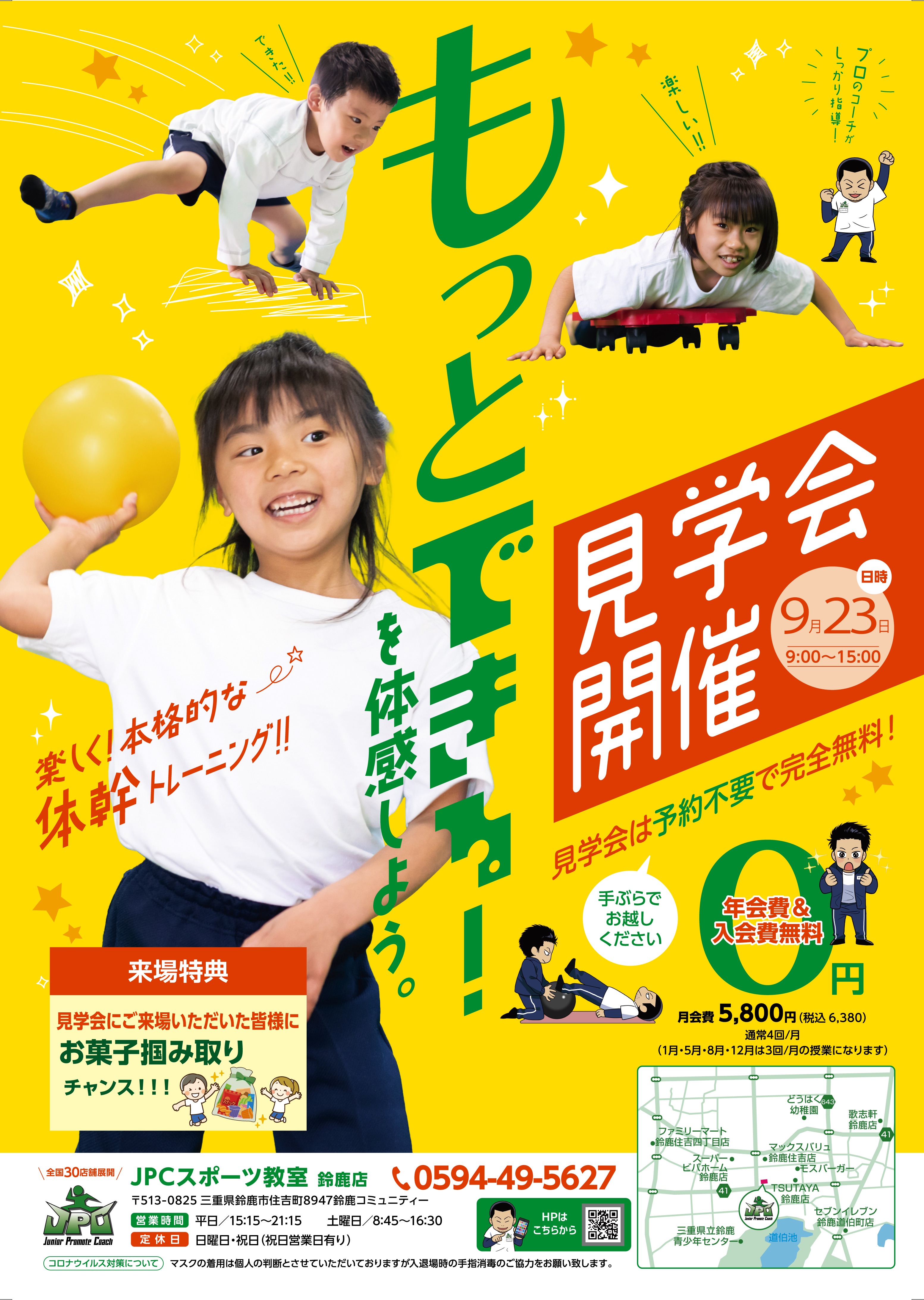 ✨秋の見学会 開催✨ 日時:9月23日【土】 9:00-15:00 場所:jpcスポーツ教室鈴鹿店 スポーツの秋に 何かあたらしい習い事はじめませんか?? 三重県では、鈴鹿、桑名の2店舗しかない 【体...