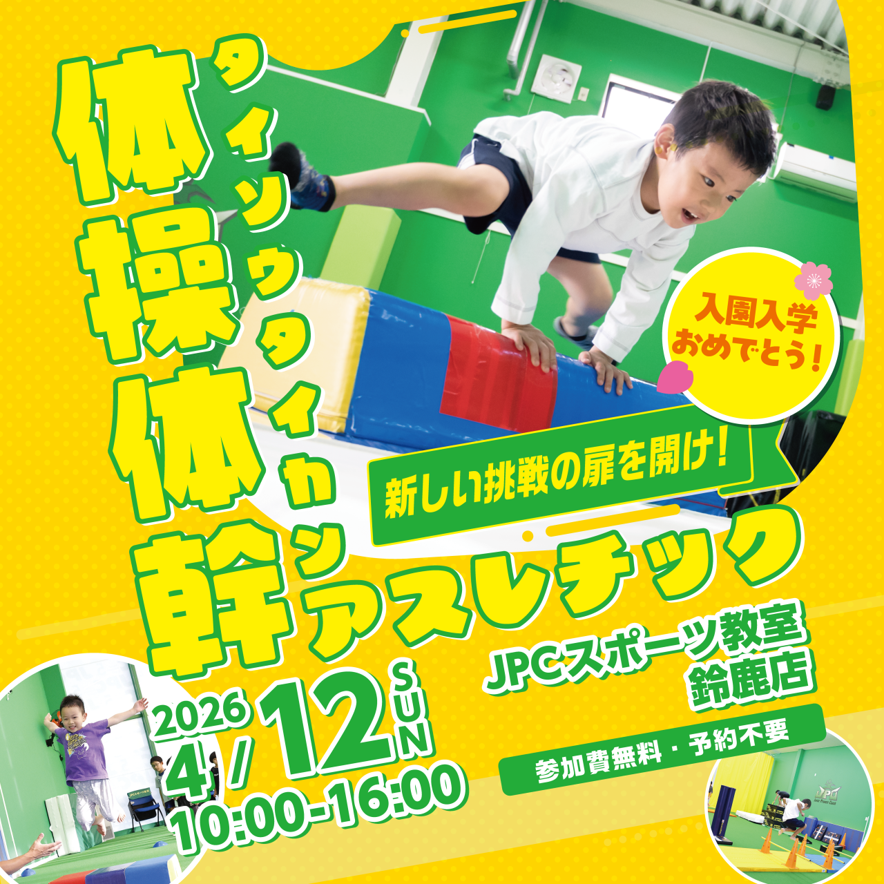 全国に約90店舗・約2万人が通うJPCスポーツ教室鈴鹿店 4月13日【参加無料・予約不要】体幹キッズパルクールワールドイベント開催! 4月19日(日)JPCスポーツ教室鈴鹿店【体幹キッズパルクールワー...