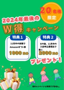 ・11月中に入会申込提出(始めるのは12月からでも可)で特典2となります。