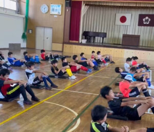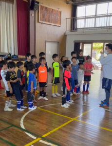 5/25(土)綾里小学校体育館で大垣西部サッカー少年団の子たちに