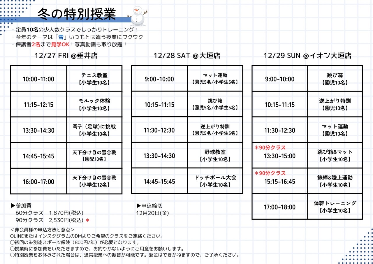 ❄️2024年 冬の特別授業 ご案内❄️