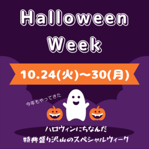 🎃👻Halloween Week👻🎃 10月24日〜10月30日の期間にHalloweenweekを開催します🎃 ※10月31日は教室がお休みになりますので、ご注意下さい。 楽しい・嬉しいの1週間にな...