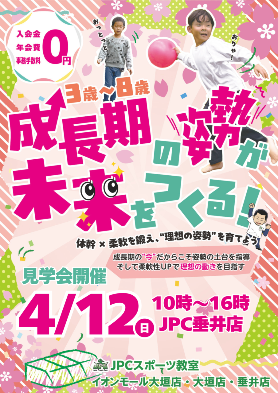 🌸春からの習い事、まずは体験から! \JPCスポーツ教室 垂井店/ 「運動が苦手でも大丈夫かな?」 「続けられるか不安…」 そんな方のために 無料体験会&体幹チャレンジパーク開催! ⸻ 【体幹チャレン...