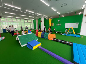 当日は、遊び感覚で体幹が鍛えられる特設のアスレチックパークと