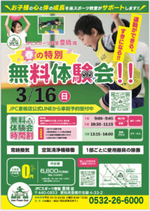 (公式LINE→在校生&一般→無料体験申込→日曜日無料体験会をタップ👍)