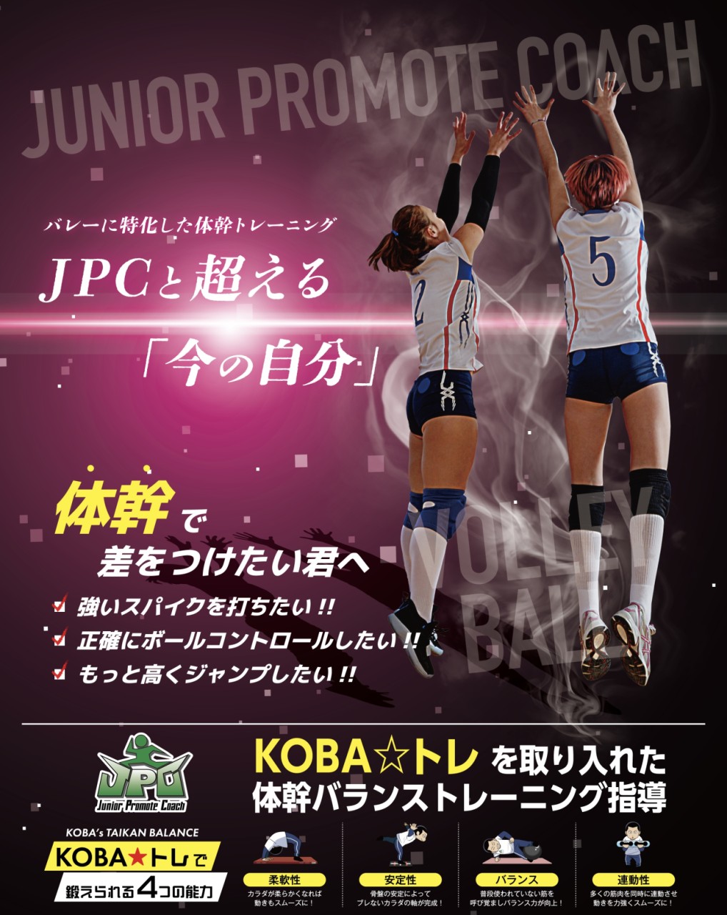 バレーボールで活躍するために欠かせないのが、体幹の安定・ジャンプ力・正確なボールコントロールです。 JPCスポーツ教室燕三条店では、写真のように KOBA式体幹バランストレーニング を取り入れ、バレー...