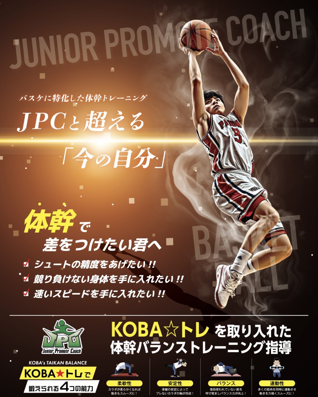 バスケが変わるKOBA式体幹バランストレーニング|JPCスポーツ教室燕三条店 バスケットボールで活躍するために欠かせないのが、体幹の安定・動きのキレ・全身の連動性です。 JPCスポーツ教室燕三条店では...