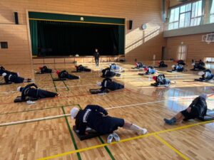 の説明を実施した後、足が速くなるための体幹トレーニングを行いました!