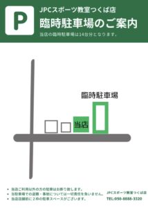こんにちは! 本日は、JPCスポーツ教室つくば店の臨時駐車場についてご案内します!       JPCスポーツ教室つくば店東隣にある砂利敷き駐車場が臨時駐車場となります!   臨時駐車場は、 ...