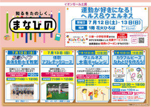 こんにちは! イオンモール土浦でのイベントのお知らせです!   体幹アスレチックコース 7月13日(日)11時~12時 イオンモール土浦1階花火ひろば 当日は無料、予約不要、出入り自由 2歳から小学生...