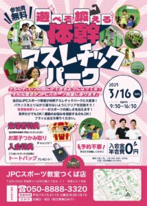 こんにちは!   2025年第1弾‼️ 昨年大好評だった体幹アスレチックパーク開催決定‼️   ✅3月16日(日)9:30~16:30 ✅JPCスポーツ教室つくば店   JPCスポーツ教室つくば店が子...
