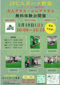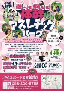 みなさまこんにちは! JPCスポーツ教室イオンタウン鵜沼店がopenして半年が過ぎました。 お陰様でたくさんの生徒さんに通っていただいております!(^^)! 今回はイベントのご案内です! 下記日程で開...