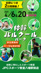 あけましておめでとうございます! JPCスポーツ教室八幡駅前店です!! 5月のオープンからはや8ヶ月2025年は新しい仲間も加わり更に子供達の成長をサポートすべくコーチ陣も成長の速度を上げて行きたいと...