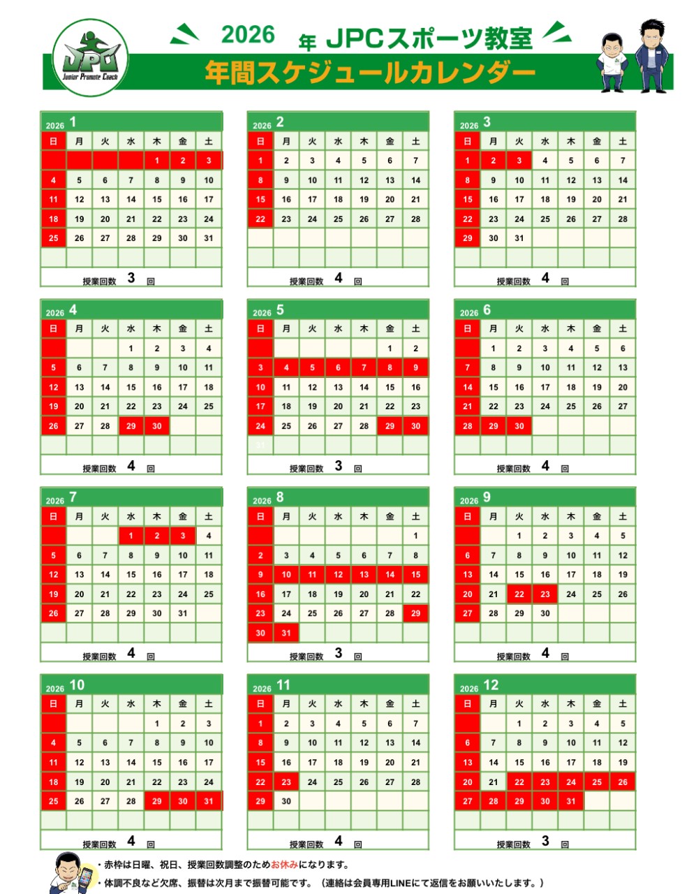 JPCスポーツ教室八幡駅前店2026年間スケジュール