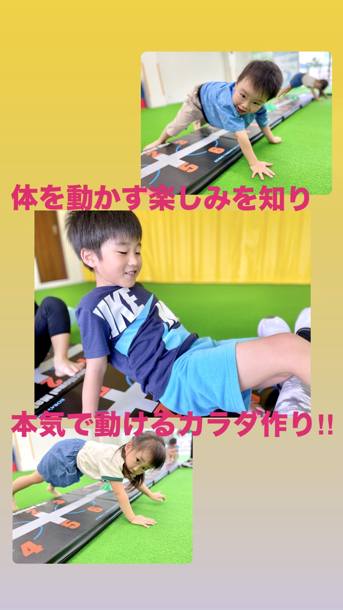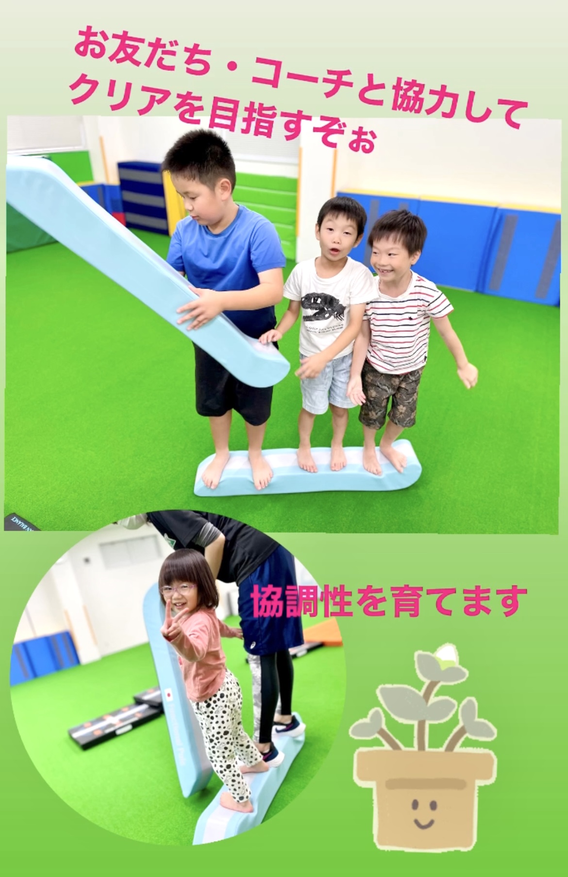 JPCスポーツ教室山形店では、たくさんの成功を積み上げ、諦めない、自ら挑戦する子、自己肯定感の高い子に! お友達と協力したり、一生懸命な姿がステキです✨ *体操体幹トレーニングクラス* 対象:園児〜小...